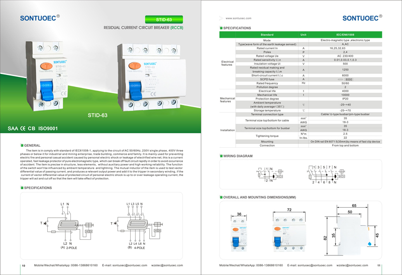 Sontuoec ndomumwe wevatengesi veChinese / Vagadziri vanonyatsoziva mukugadzirwa kwemidziyo midiki yemagetsi. Stid-63 Series rccb 230V 63A inosara yeDunhu redunhu rinogona kugura dunhu rekushambadzira nekukurumidza. Inowirirana neIEC61008-1 chiyero.